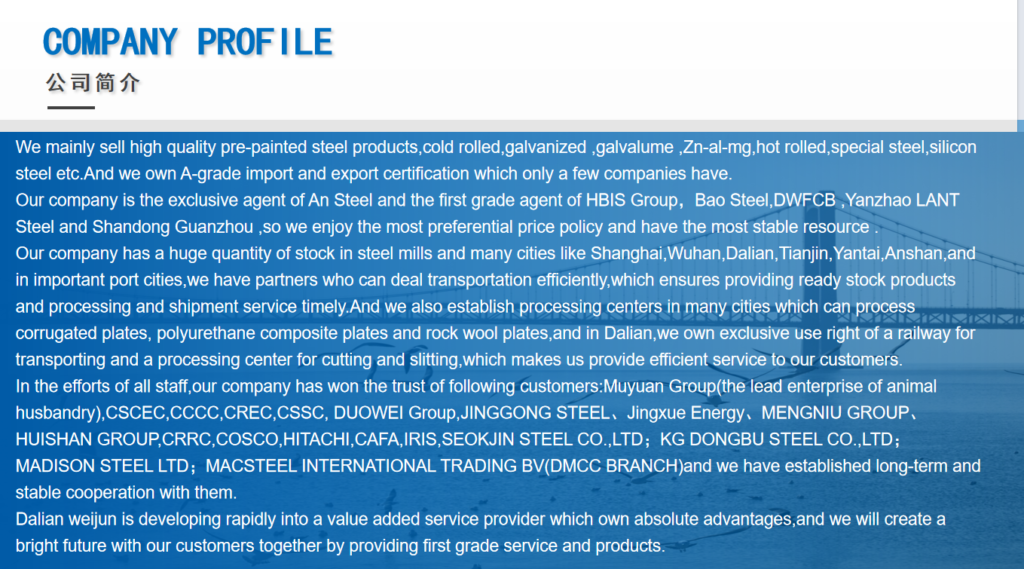 AN STEEL GROUP’S EXCLUSIVE AGENT IN NORTHEAST OF CHINA